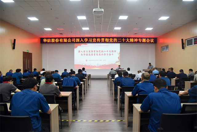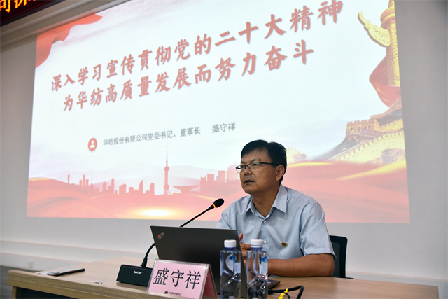 盛守祥指出,黨的二十大是在全黨全國各族人民邁上全面建設社會主義現(xiàn)代化國家新征程、向第二個百年奮斗目標進軍的關鍵時刻召開的一次十分重要的大會,是一次高舉旗幟、凝聚力量、團結奮進的大會。大會回顧總結了過去五年的工作和新時代十年的偉大變革,闡述了開辟馬克思主義中國化時代化新境界、中國式現(xiàn)代化的中國特色和本質要求等重大問題,對全面建設社會主義現(xiàn)代化國家、全面推進中華民族偉大復興進行了戰(zhàn)略部署。也為我們華紡事業(yè)高質量發(fā)展指明了前進方向。華紡作為中國紡織印染行業(yè)重要骨干力量,將堅決貫徹黨的二十大精神,牢牢把握新時代新征程黨的使命任務,自覺把責任擔當放在心上、扛在肩上,以高質量發(fā)展為目標,踔厲奮發(fā)推進高水平現(xiàn)代化企業(yè)建設。