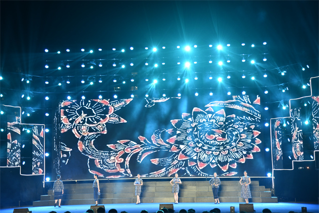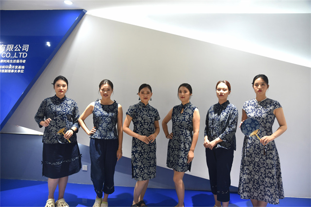 此次文藝匯演中,公司參演人員盡著由公司設(shè)計(jì)生產(chǎn)的服裝產(chǎn)品。藍(lán)印花布系列服飾以藍(lán)白分明、清新明質(zhì)、純真素樸、典雅大方的藝術(shù)特點(diǎn)體現(xiàn)了濱州大地濃厚的文化底蘊(yùn)。