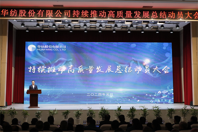 1月1日,華紡股份有限公司持續(xù)推動(dòng)高質(zhì)量發(fā)展總結(jié)動(dòng)員大會(huì)在會(huì)議中心一號(hào)會(huì)議室隆重召開。市國(guó)資委四級(jí)調(diào)研員王克寧,公司黨委書記、董事長(zhǎng)盛守祥,公司黨委、行政班子成員以及員工代表等五百余人齊聚一堂,總結(jié)2023榮光,展望2024宏圖,表彰優(yōu)秀、激勵(lì)先進(jìn)、凝聚共識(shí)、匯聚力量,以昂揚(yáng)的姿態(tài)譜寫公司高質(zhì)量發(fā)展的新篇章。