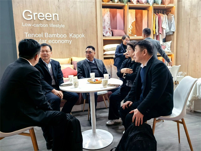 展會(huì)首日,中國(guó)紡織工業(yè)聯(lián)合會(huì)副會(huì)長(zhǎng)楊兆華等領(lǐng)導(dǎo)專(zhuān)程到華紡股份展位參觀指導(dǎo)。領(lǐng)導(dǎo)們認(rèn)真聽(tīng)取了家紡公司總經(jīng)理成汝海對(duì)家紡產(chǎn)品的介紹,仔細(xì)觀看了解了各類(lèi)展品。楊兆華副會(huì)長(zhǎng)對(duì)華紡股份有限公司在產(chǎn)業(yè)升級(jí)、產(chǎn)品結(jié)構(gòu)調(diào)整方面取得的成績(jī)給予了充分肯定,希望公司繼續(xù)加大研發(fā)投入,提升產(chǎn)品科技含量和附加值,進(jìn)一步加強(qiáng)品牌建設(shè),提高中國(guó)家紡產(chǎn)品在國(guó)際市場(chǎng)的知名度和影響力。