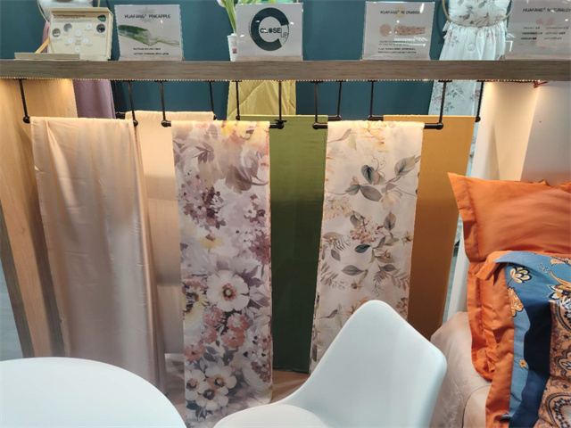 此屆法蘭克福家紡展,華紡股份家紡分公司打造了以“Green world”為主題,以綠色環(huán)??沙掷m(xù)的特色纖維產(chǎn)品為主材質(zhì),研發(fā)了醋酸系列/真橙系列/木棉系列/絲質(zhì)系列/超柔系列/麻系列六大系列產(chǎn)品,從材質(zhì)、功能、膚感、科技、花型、款式等多方面對(duì)產(chǎn)品進(jìn)行了融合升級(jí),吸引了來(lái)自法國(guó)、意大利、葡萄牙等諸多國(guó)家的客戶(hù)進(jìn)入展位進(jìn)行咨詢(xún)洽談!其中,迎合歐洲市場(chǎng)喜好的亞麻、漢麻提花、色織簡(jiǎn)約條紋產(chǎn)品也成功吸引了來(lái)自歐美的客戶(hù)。